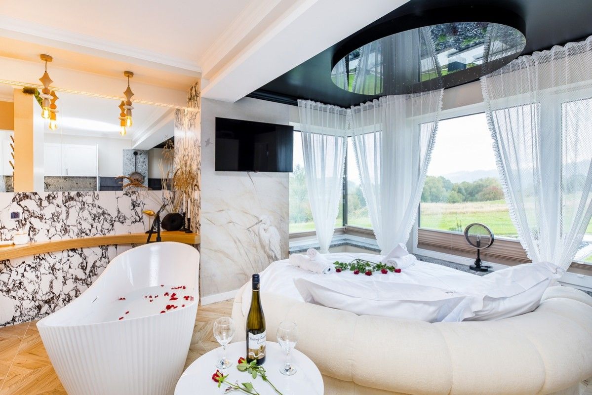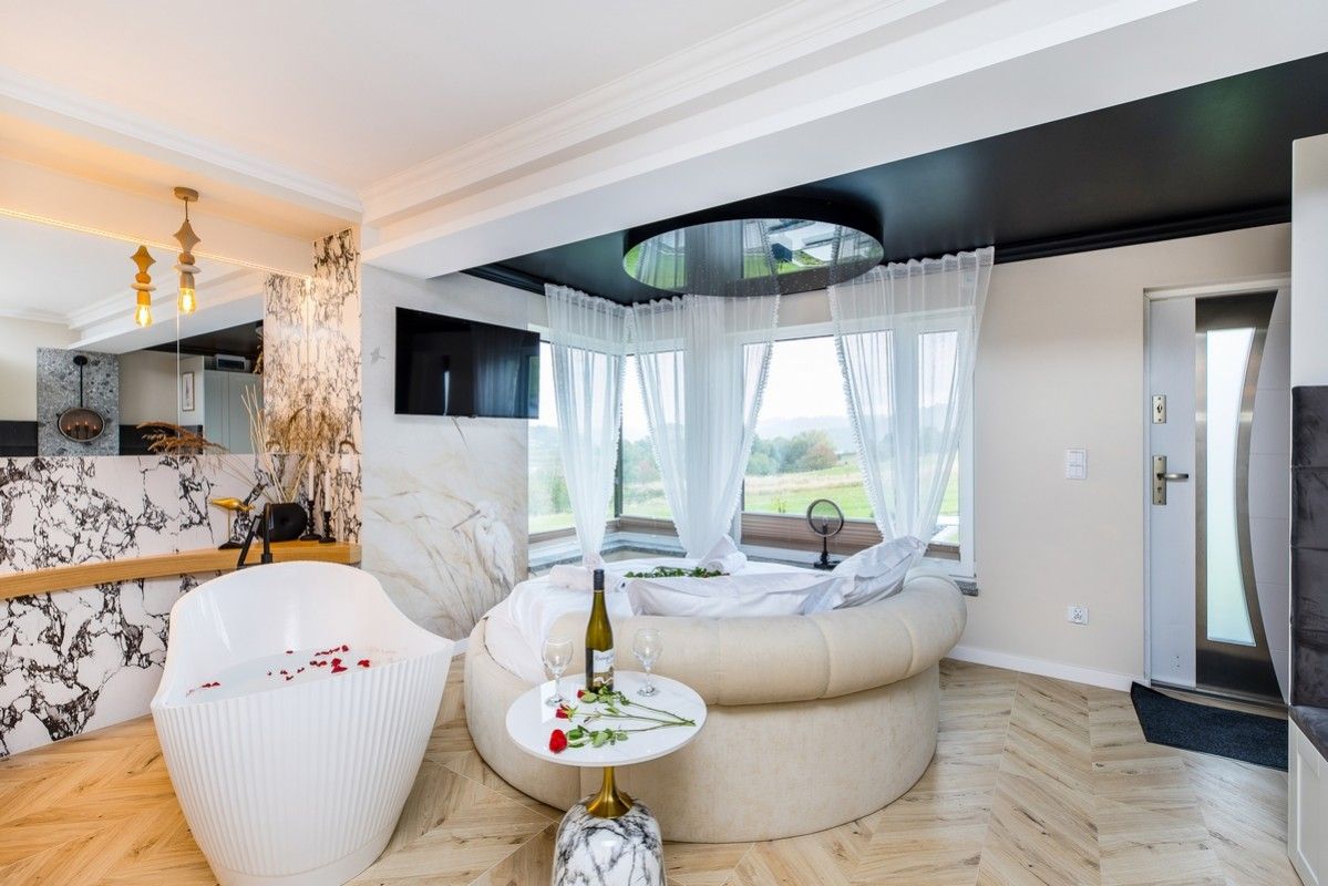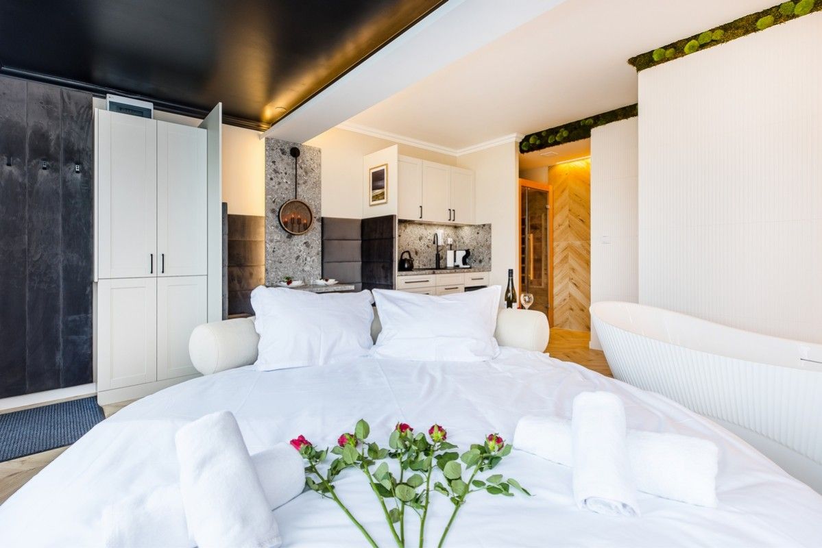 DOM/ APARTAMENT nr 10 to elegancki, nowoczesny apartament wypoczynkowy przeznaczony dla maksymalnie 2 osób, zlokalizowany w kompleksie Czarna Perła w Kluszkowcach, tuż nad Jeziorem Czorsztyńskim. Przestronne wnętrze, wysokiej klasy wyposażenie oraz piękne widoki sprawiają, że to idealna przestrzeń na wypoczynek z rodziną lub przyjaciółmi – o każdej porze roku.