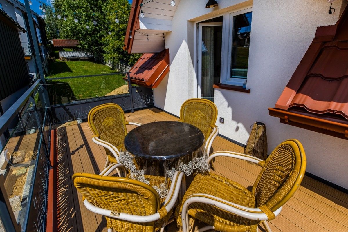 - Balkon i taras z widokiem na Jezioro Czorsztyńskie oraz Tatry i Pieniny,