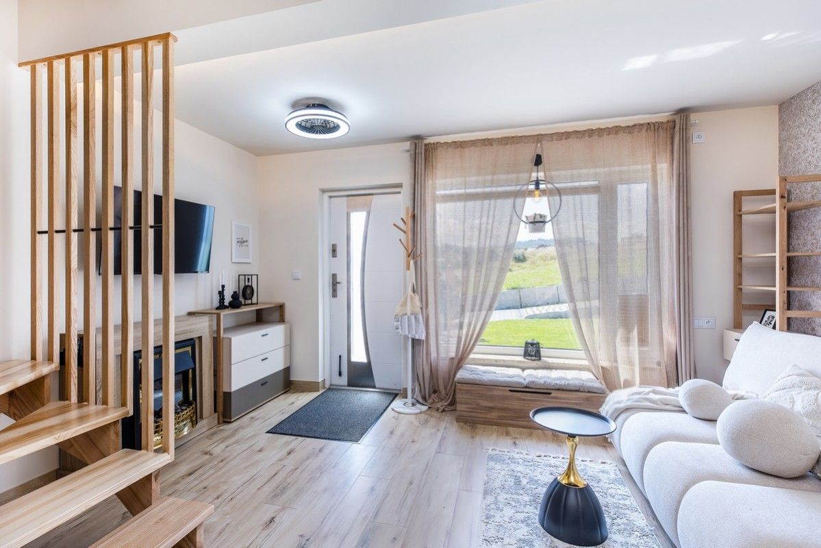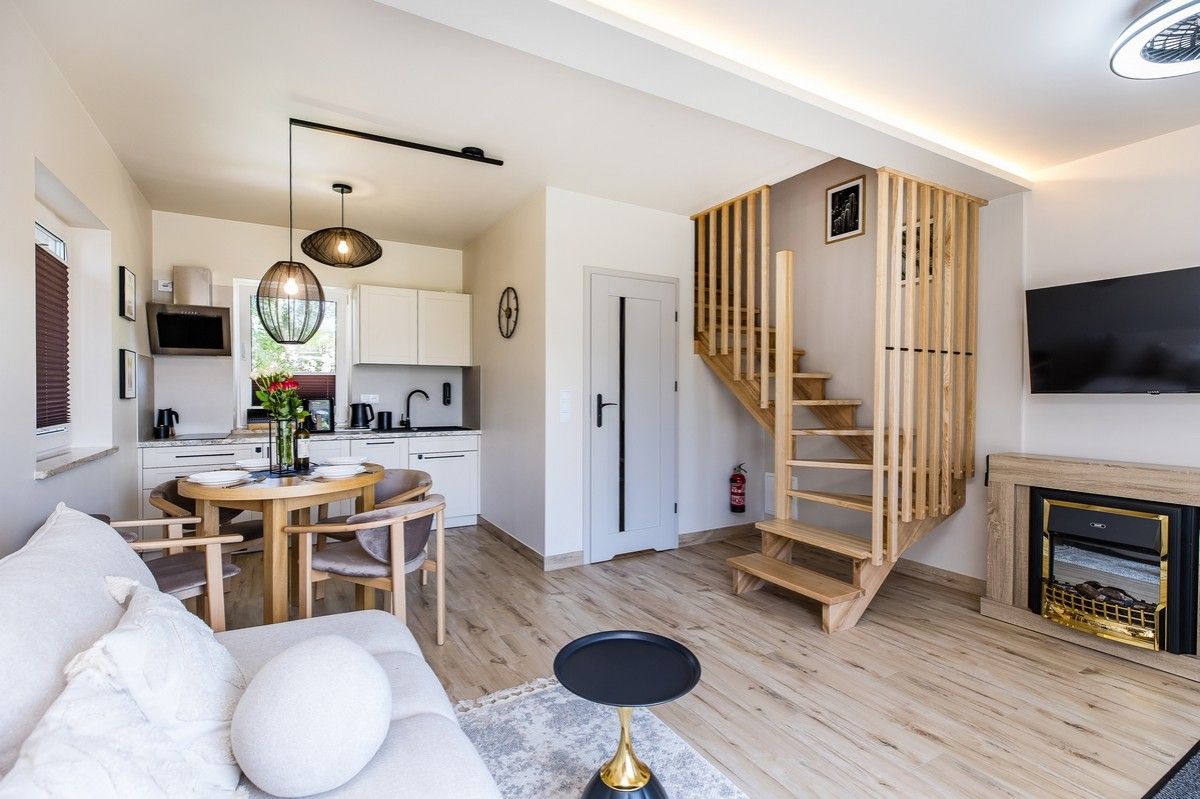 DOM nr 6 to elegancki, nowoczesny domek wypoczynkowy przeznaczony dla maksymalnie 4 osób, zlokalizowany w kompleksie Czarna Perła w Kluszkowcach, tuż nad Jeziorem Czorsztyńskim. Przestronne wnętrze, wysokiej klasy wyposażenie oraz piękne widoki sprawiają, że to idealna przestrzeń na wypoczynek z rodziną lub przyjaciółmi – o każdej porze roku.