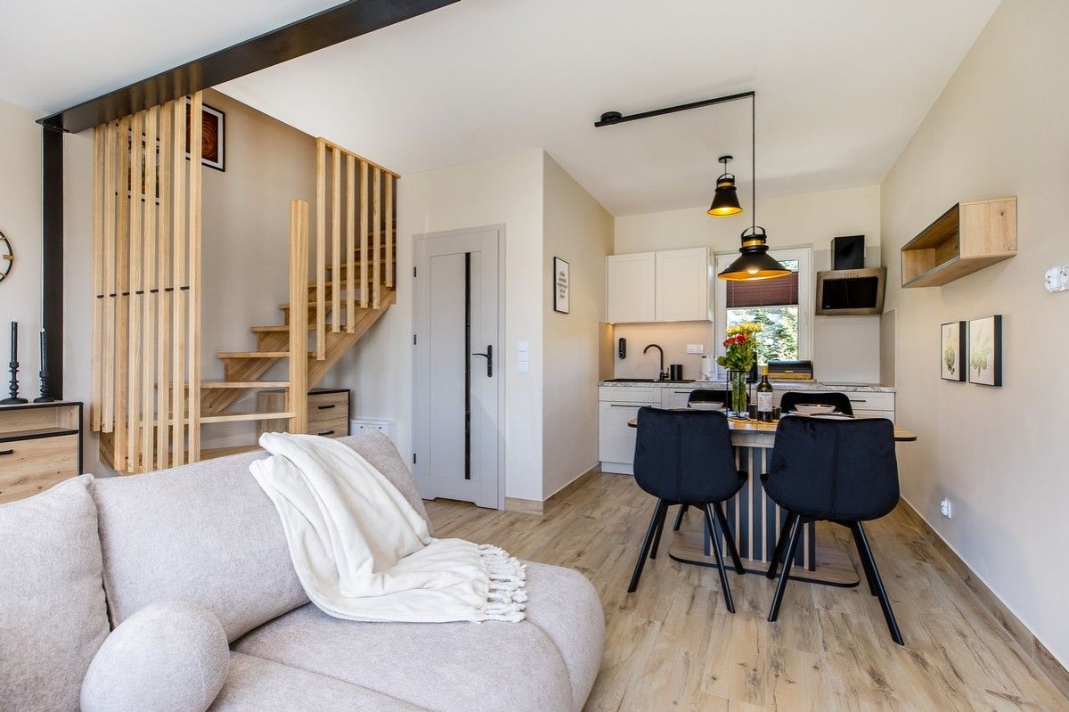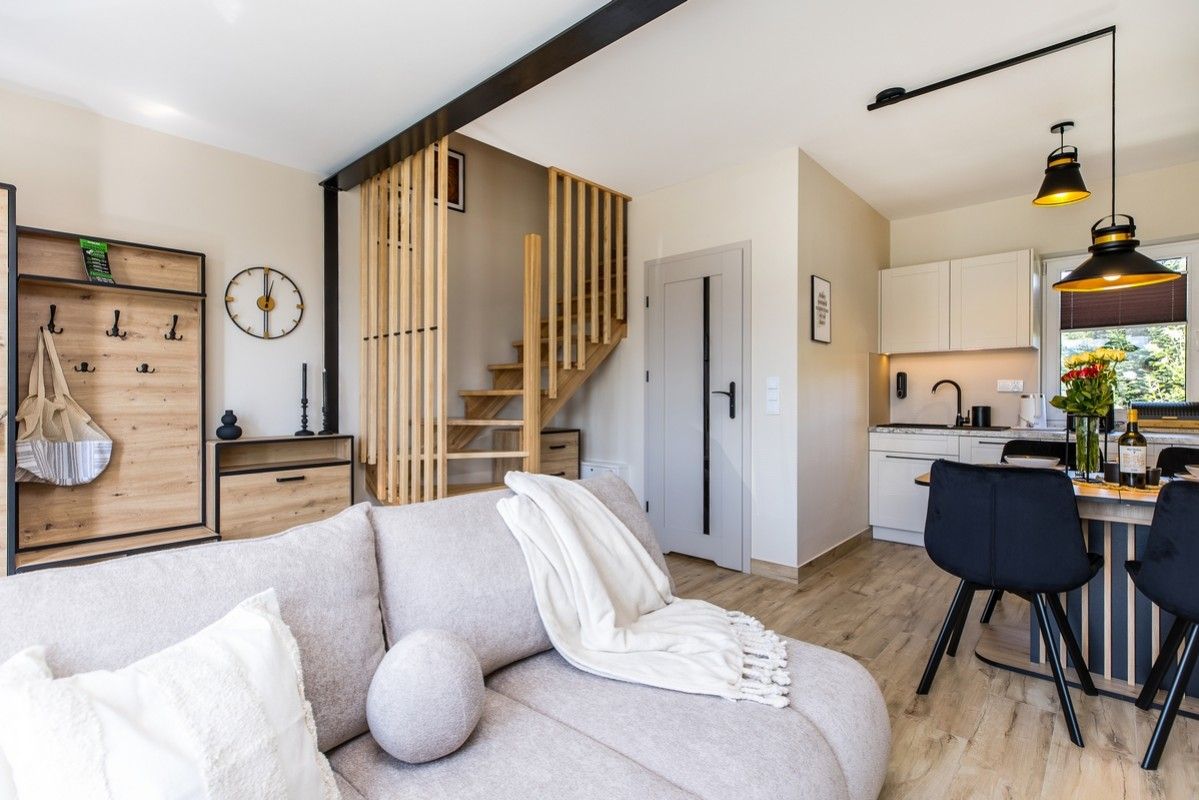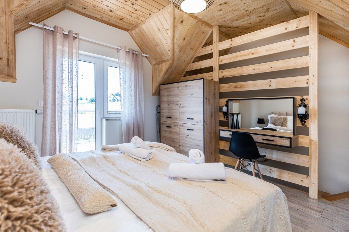 DOM nr 7 to elegancki, nowoczesny domek wypoczynkowy przeznaczony dla maksymalnie 4 osób, zlokalizowany w kompleksie Czarna Perła w Kluszkowcach, tuż nad Jeziorem Czorsztyńskim. Przestronne wnętrze, wysokiej klasy wyposażenie oraz piękne widoki sprawiają, że to idealna przestrzeń na wypoczynek z rodziną lub przyjaciółmi – o każdej porze roku.