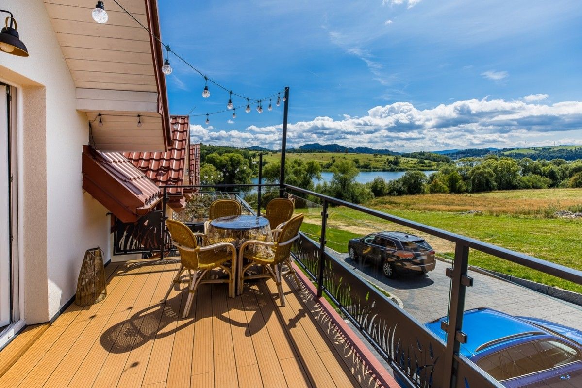 - Balkon i taras z widokiem na Jezioro Czorsztyńskie oraz Tatry i Pieniny,