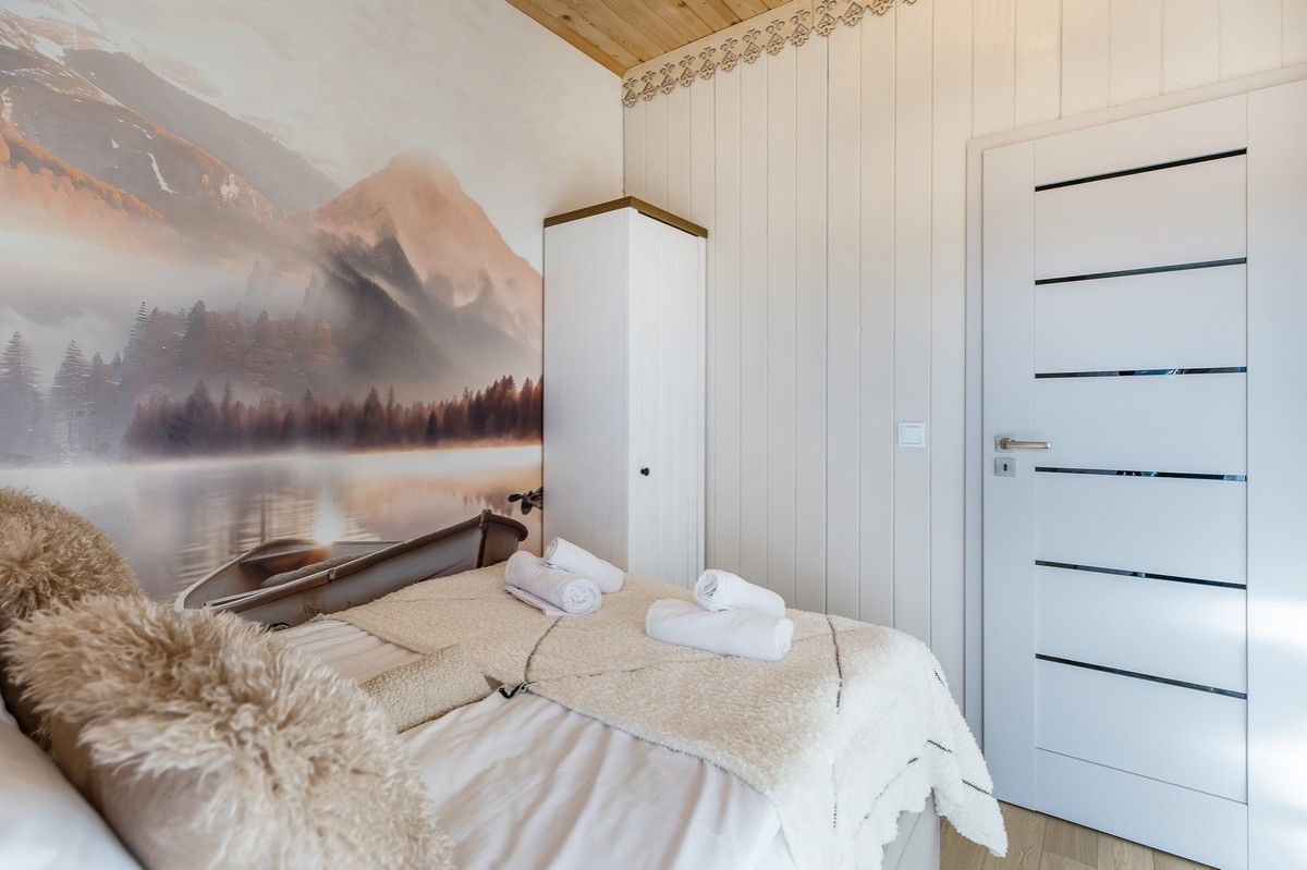 Wnętrze domku zaprojektowane zostało z dbałością o wygodę i funkcjonalność: