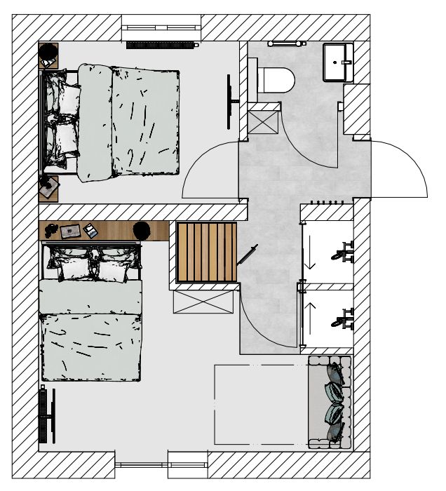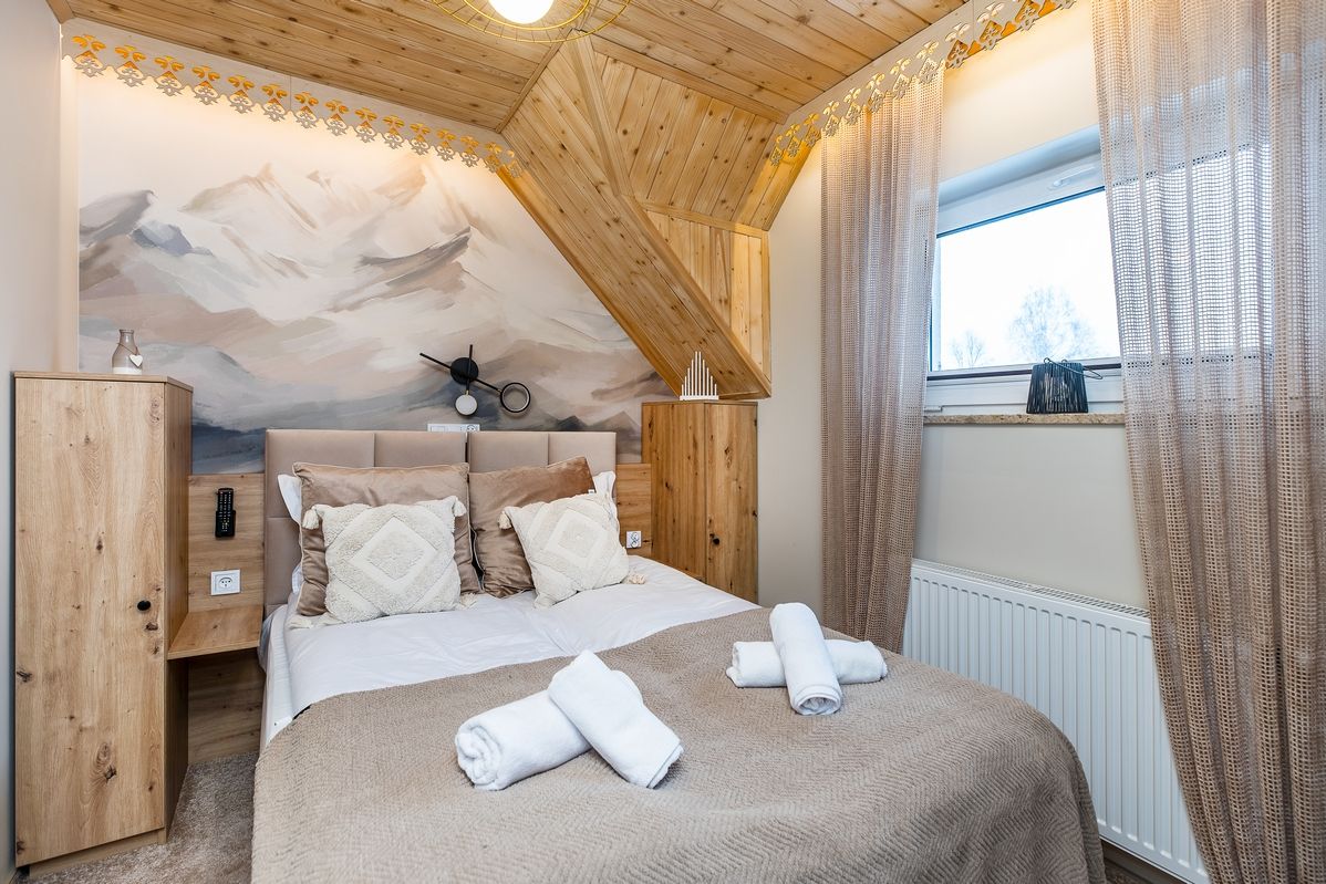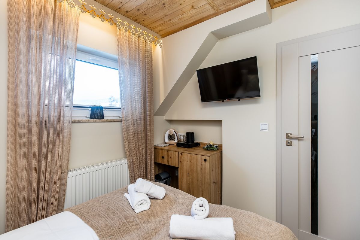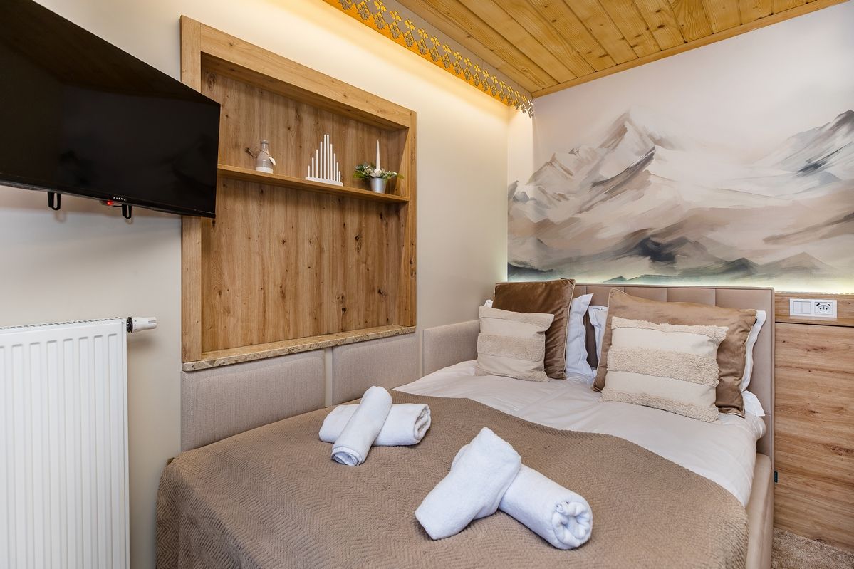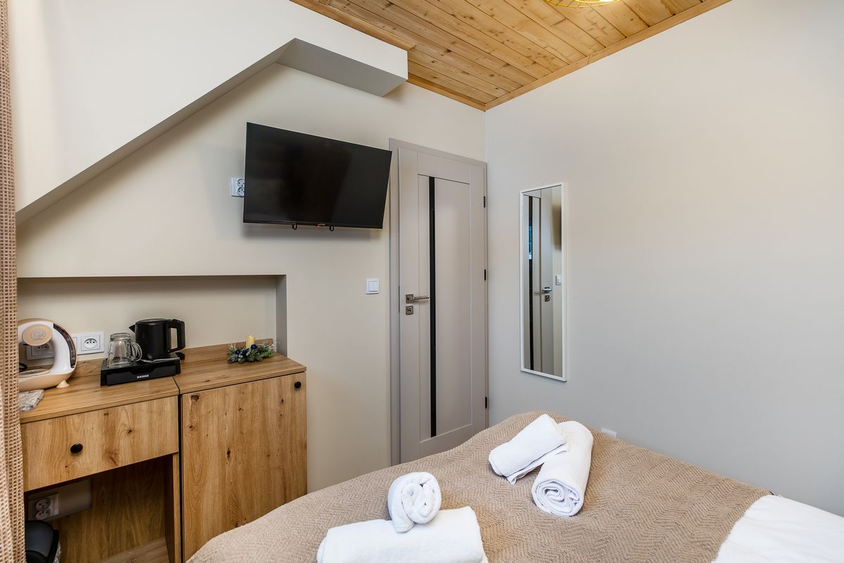 Wnętrze pokoju zaprojektowane zostało z dbałością o wygodę i funkcjonalność: