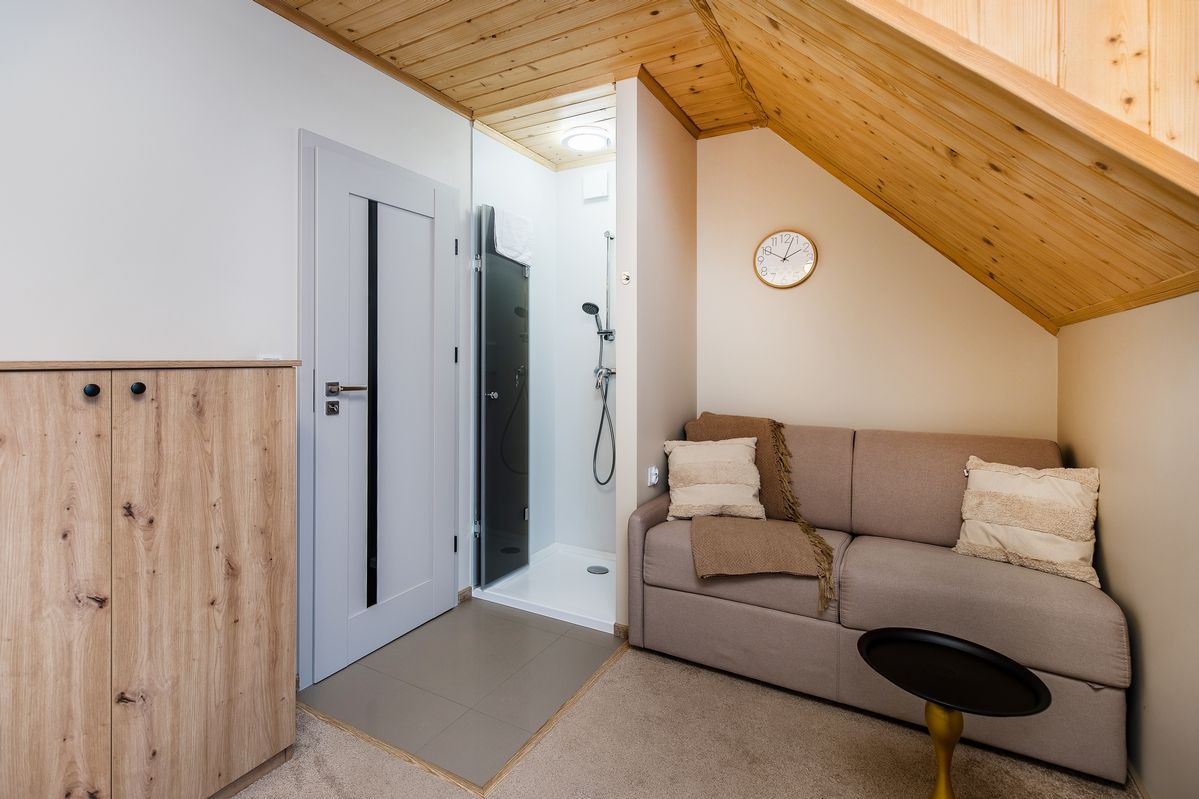 Pokój nr 6P to elegancki, nowoczesny pokój wypoczynkowy przeznaczony dla maksymalnie 6 osób ( 4 dorosłych i dwoje dzieci ) zlokalizowany w kompleksie Czarna Perła w Kluszkowcach, tuż nad Jeziorem Czorsztyńskim. Przestronne wnętrze, wysokiej klasy wyposażenie oraz piękne widoki sprawiają, że to idealna przestrzeń na wypoczynek z rodziną lub przyjaciółmi – o każdej porze roku.