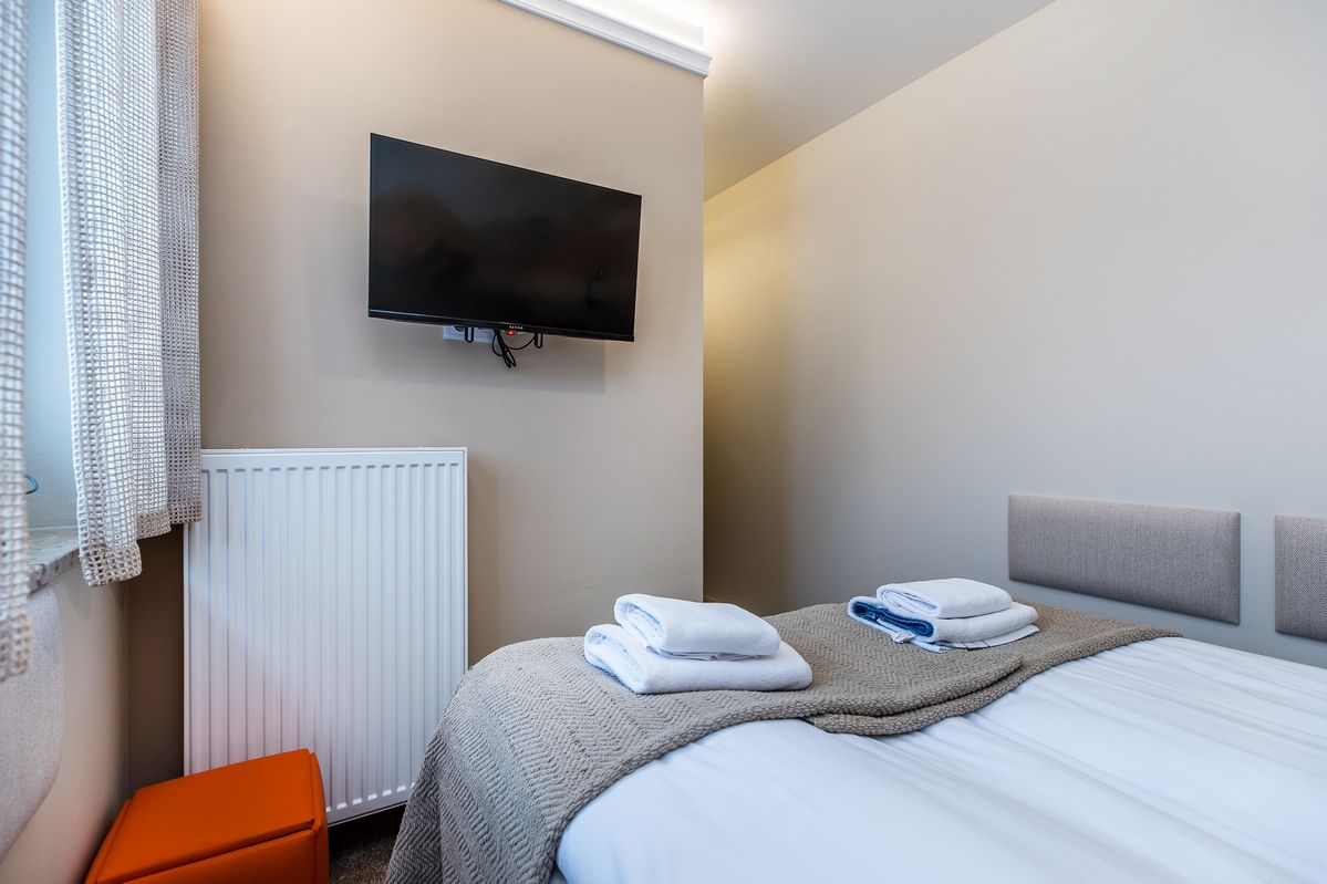 Wnętrze pokoju zaprojektowane zostało z dbałością o wygodę i funkcjonalność: