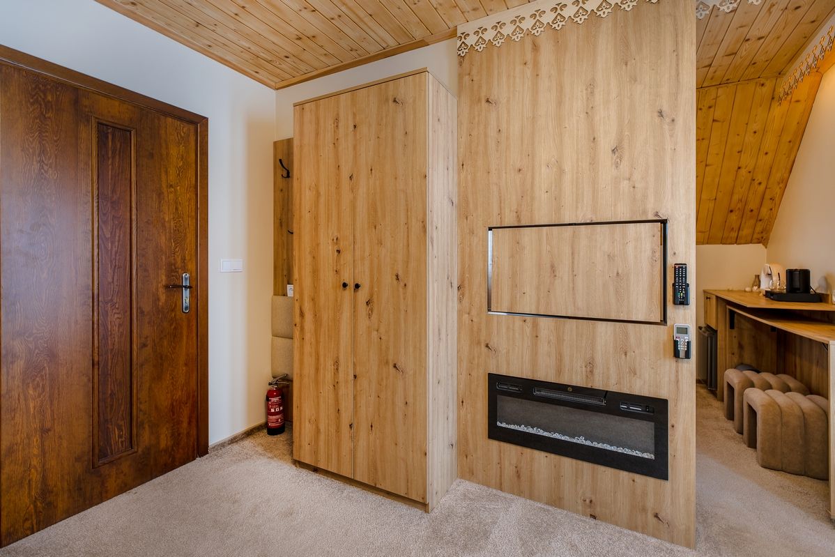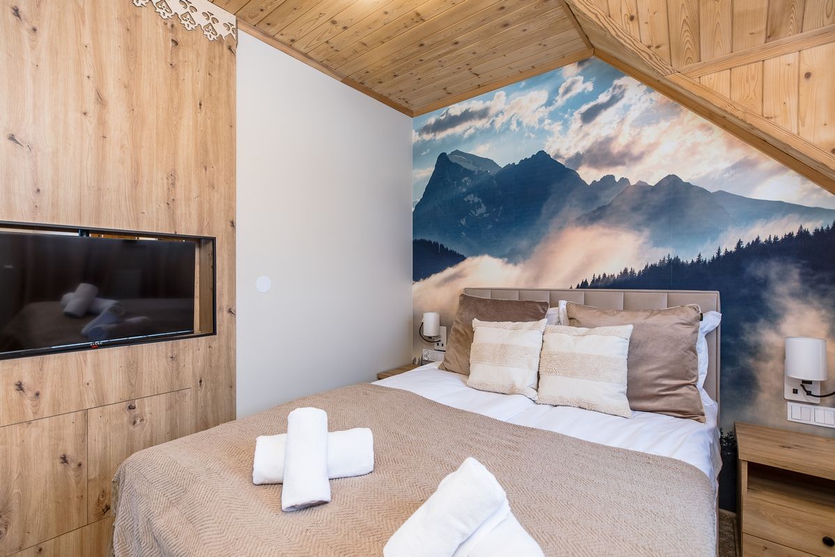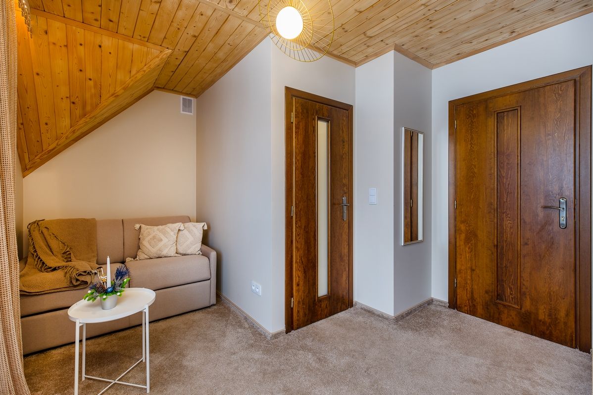 Pokój nr 5P to elegancki, nowoczesny pokój wypoczynkowy przeznaczony dla maksymalnie 4 osób ( 2 dorosłych i dwoje dzieci ) zlokalizowany w kompleksie Czarna Perła w Kluszkowcach, tuż nad Jeziorem Czorsztyńskim. Przestronne wnętrze, wysokiej klasy wyposażenie oraz piękne widoki sprawiają, że to idealna przestrzeń na wypoczynek z rodziną lub przyjaciółmi – o każdej porze roku.