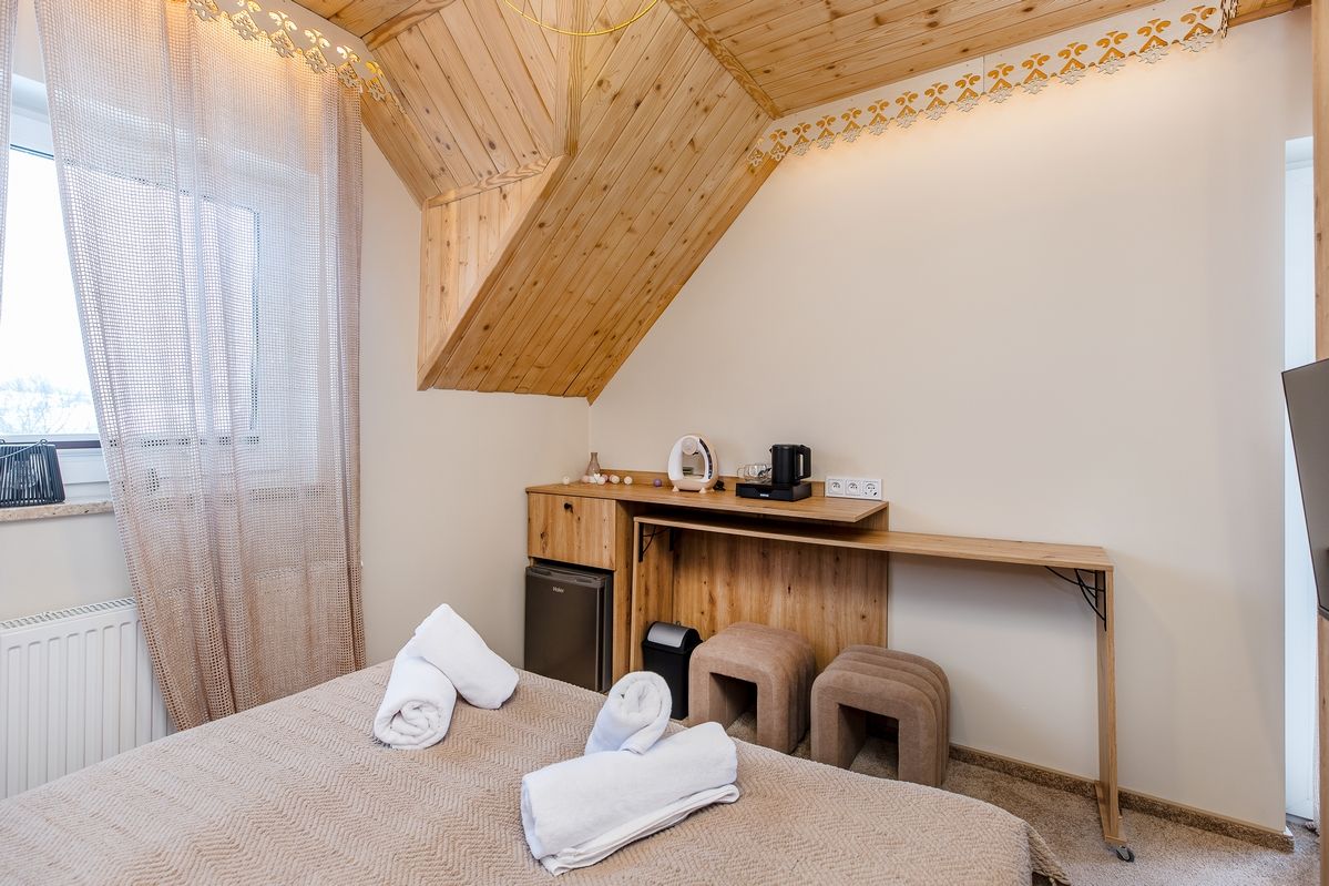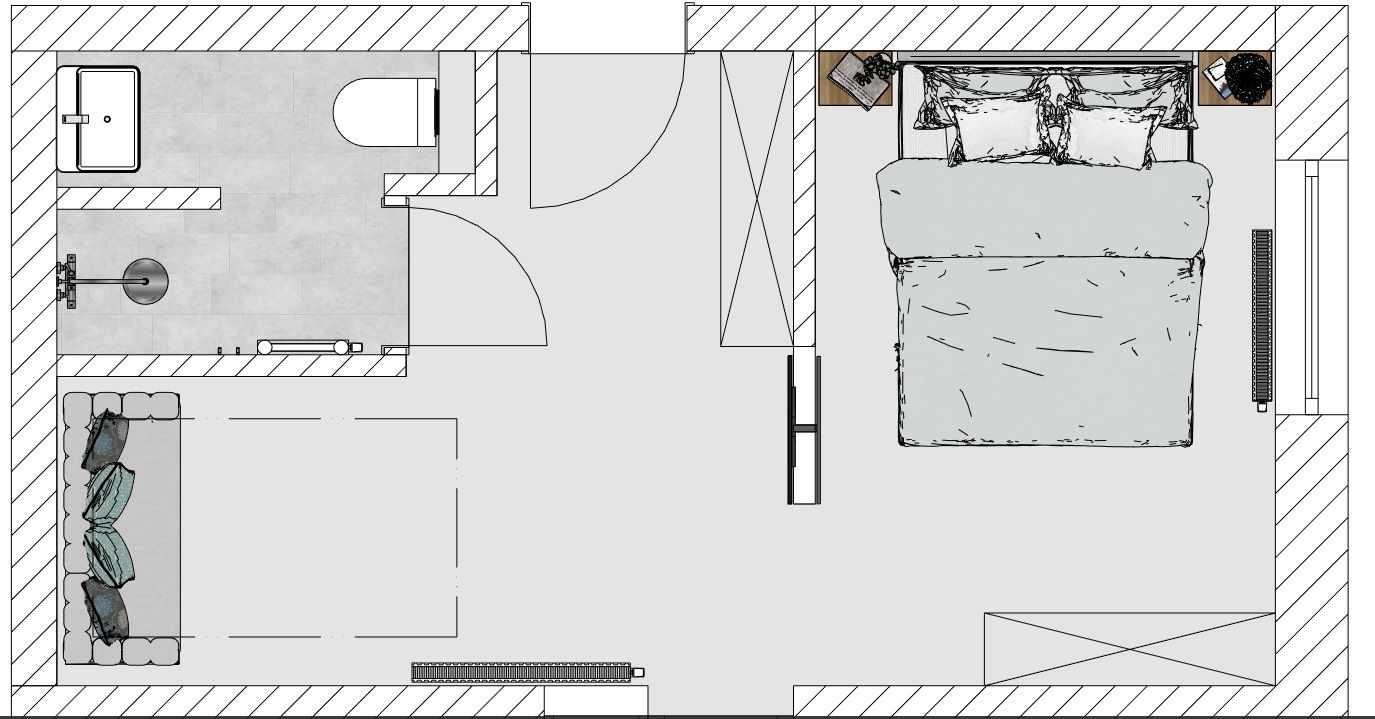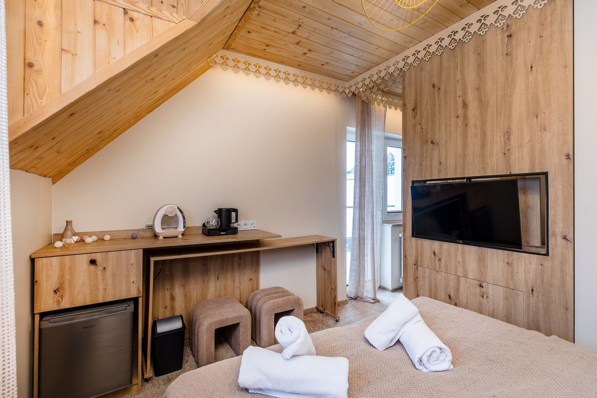 Wnętrze pokoju zaprojektowane zostało z dbałością o wygodę i funkcjonalność: